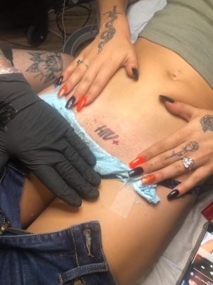 She got a tatoo close to her private part indicating that she is infected and then she announced it on Twitter. Her audacious act has gone viral on social media with thousands of people retweeting it.